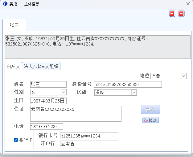 - 需先录入案件后再添加主体