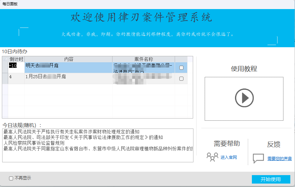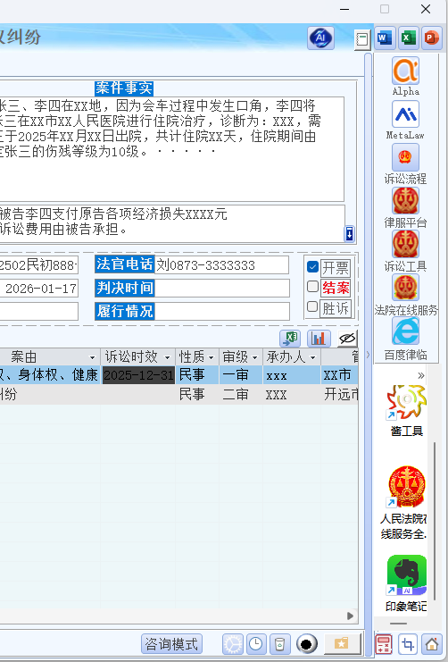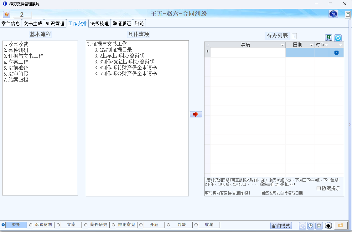 - 多案件类型支持:刑事、民事、顾问、非诉、行政、仲裁等