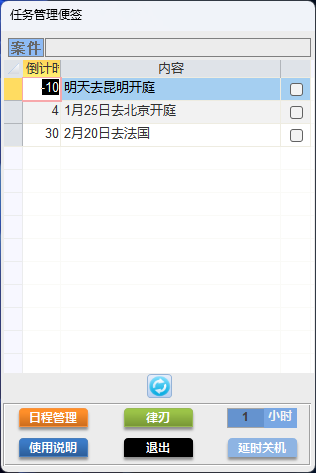 - 可关联案件,支持标记完成、编辑、删除、按条件筛选