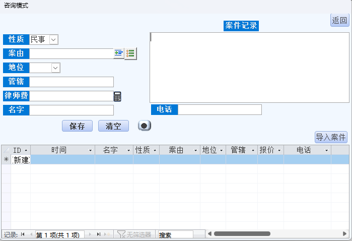 - 一案一号一页面:每个案件独立管理,录入便捷,检索方便