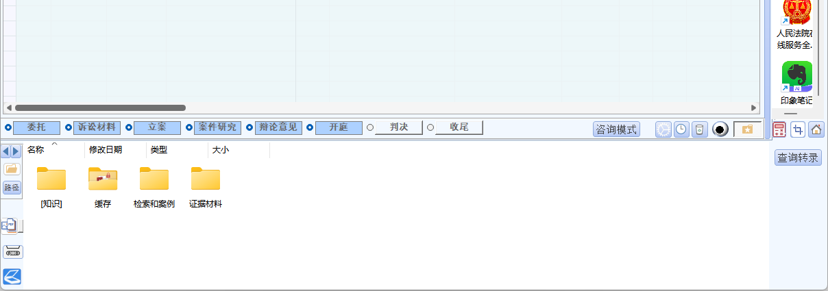 - 查看、上传、打开、下载、删除案件相关文件,可创建文件夹整理